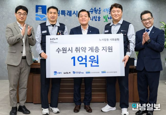 안녕일보 배윤 기자 | 기아(주) 노사가 “수원시 취약계층 지원에 사용해달라”며 1억 원을 한국사회복지협의회에 기탁했다. 기부금은 수원시사회복지협의회를 통해 수원시 복지사각지대와 취약계층 지원에 사용될 예정이다.