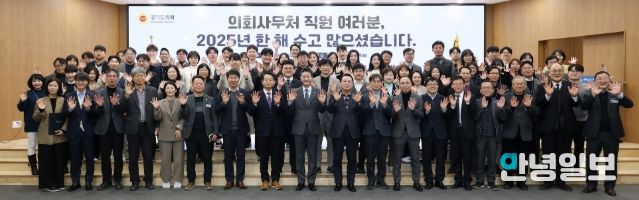 안녕일보 배윤 기자 | 경기도의회 김진경 의장(더민주·시흥3)은 31일 도의회 대회의실에서 2025년 한 해를 마무리하는 의회사무처 종무식을 열고, 사무처 직원들에 대한 격려와 감사의 마음을 전했다.