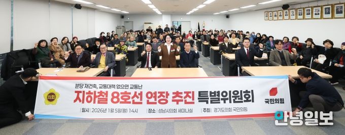 안녕일보 배윤 기자 | 경기도의회 국민의힘은 5일 ‘지하철 8호선 연장 추진 특별위원회’를 출범하고 특별위원장에 이서영(비례) 의원을 임명했다.