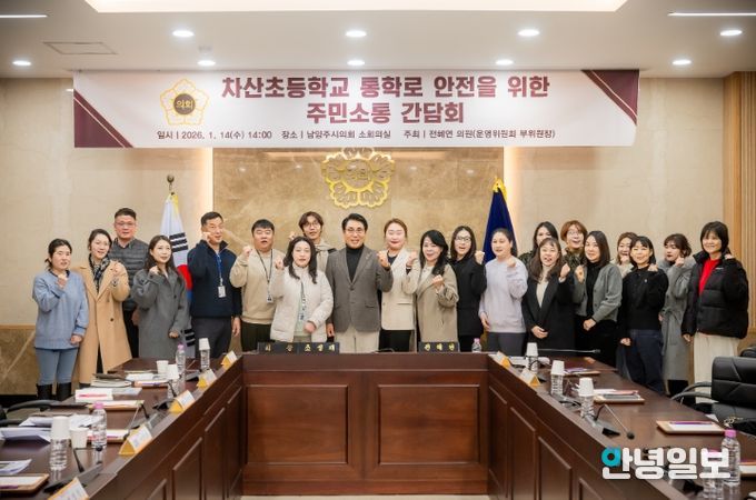 안녕일보 배윤 기자 | 남양주시의회는 14일 시의회 소회의실에서 차산초등학교 통학로 안전을 위한 주민소통 간담회를 개최했다.