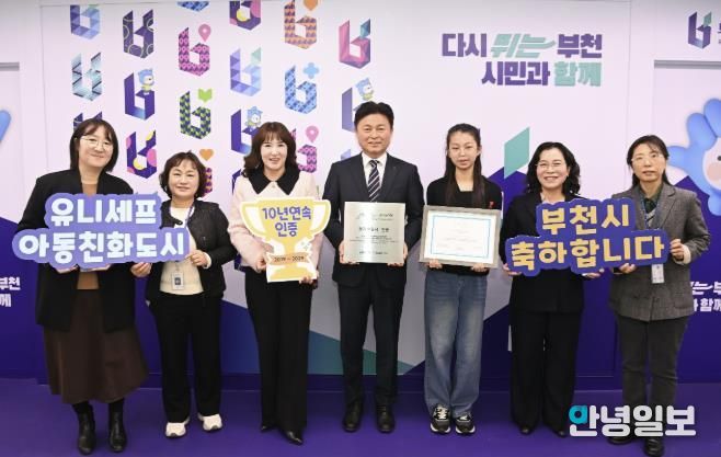안녕일보 배윤 기자 | 부천시는 유니세프 한국위원회로부터 ‘유니세프 아동친화도시’ 인증을 갱신했다고 14일 밝혔다. 이번 인증은 2019년 12월 최초 인증에 이어 자격을 유지한 것으로, 유효기간은 2029년 12월 30일까지다.