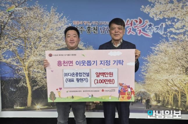 안녕일보 배윤 기자 | (주)다온종합건설은 2026년 1월 14일, 지역사회 나눔 실천의 일환으로 이웃돕기 성금을 흥천면행정복지센터에 기탁했다.