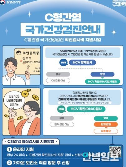 특히 보건소는 지난해(2025년) 국가건강검진에서 양성 판정을 받았으나, 당시 지원 대상이 아니었던 종합병원급 이상 의료기관을 이용해 혜택을 받지 못했던 1969년생 주민들을 위해 소급 적용을 실시한다. 해당 대상자는 오는 3월 31일까지 신청하면 검사비를 환급받을 수 있다.