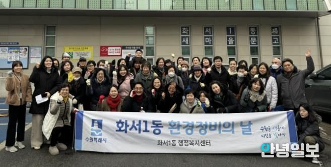 안녕일보 배윤 기자 | 수원시 팔달구 화서1동은 지난 15일, 통장협의회 등 단체원 및 주민들과 함께 2026년 설맞이 관내 환경정비를 실시했다고 밝혔다.