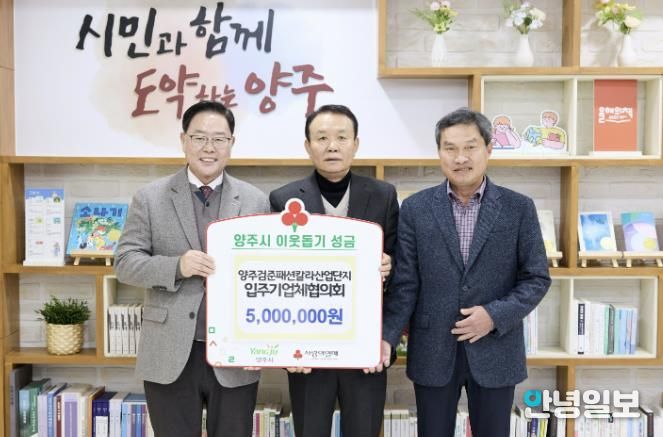 안녕일보 배윤 기자 | 양주시가 지난 15일 시장실에서 양주검준패션칼라사업협동조합을 비롯한 관련 단체 및 기업으로부터 이웃돕기 성금과 성품을 기탁받았다고 밝혔다.