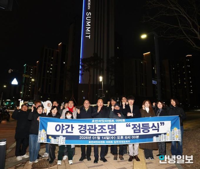 이번 점등식은 기존 옥탑부 조명을 보완해 새롭게 설치한 ‘라인 경관조명’의 본격적인 가동을 알리는 행사로, 아파트 외벽을 따라 조성된 경관조명이 점등되며 단지 전반의 야간 경관이 한층 밝고 쾌적하게 개선됐다.