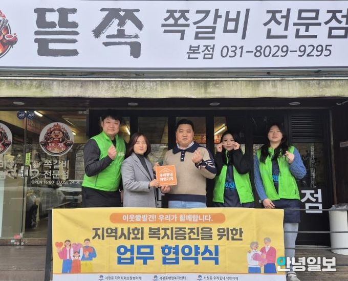 안녕일보 배윤 기자 | 평택시 서정동 지역사회보장협의체는 지난 14일, 서정동에 있는 음식점 ‘뜯쪽!’을 '우리동네 착한가게'로 지정하고 현판 전달과 함께 지역사회 복지증진을 위한 협약을 체결했다.