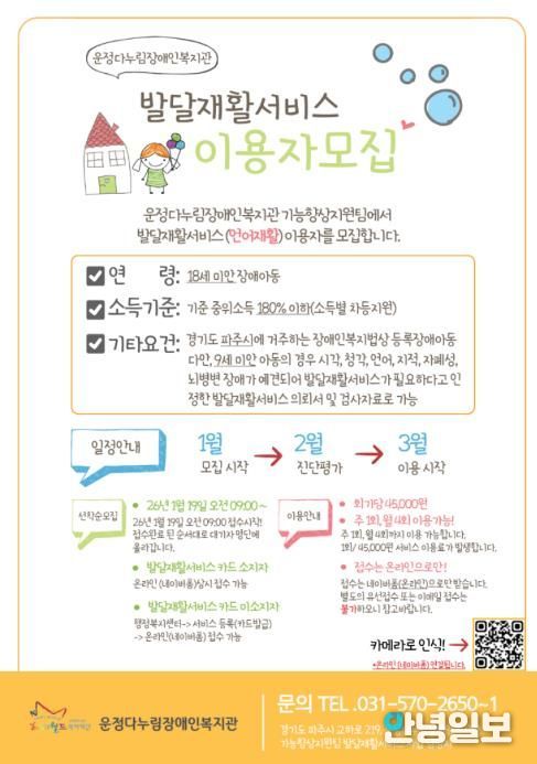 안녕일보 배윤 기자 | 파주시는 운정다누림장애인복지관을 통해 발달지연 및 장애로 언어재활치료가 필요한 아동을 위한 ‘발달재활서비스(언어재활)’를 지원한다고 밝혔다.