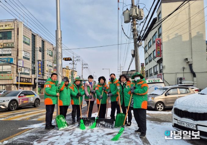 이날 제설 작업에는 자율방재단원들이 자발적으로 참여해 통행량이 주요 인도와 생활도로 주변을 중심으로 쌓인 눈과 얼음을 제거했다. 특히, 등·하굣길 학생과 출근 시간대 주민들의 안전한 보행 확보에 힘썼다.