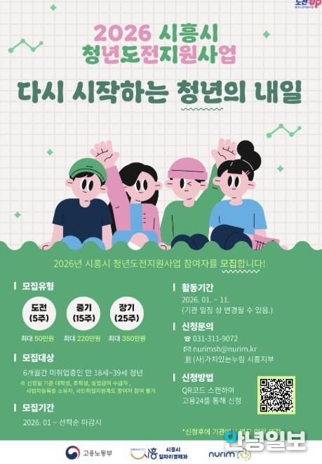 안녕일보 배윤 기자 | 시흥시는 취업과 사회 진출에 어려움을 겪고 있는 청년들의 재도전을 지원하기 위해 ‘2026년 청년도전지원사업’ 참여자 156명을 모집한다.