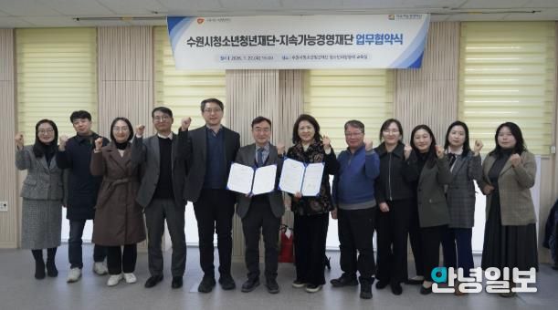 안녕일보 배윤 기자 | 수원시청소년청년재단과 지속가능경영재단은 1월 22일 고립‧은둔 청소년‧청년 및 사회적 취약 청소년‧청년 지원을 위한 업무협약(MOU)을 체결했다.