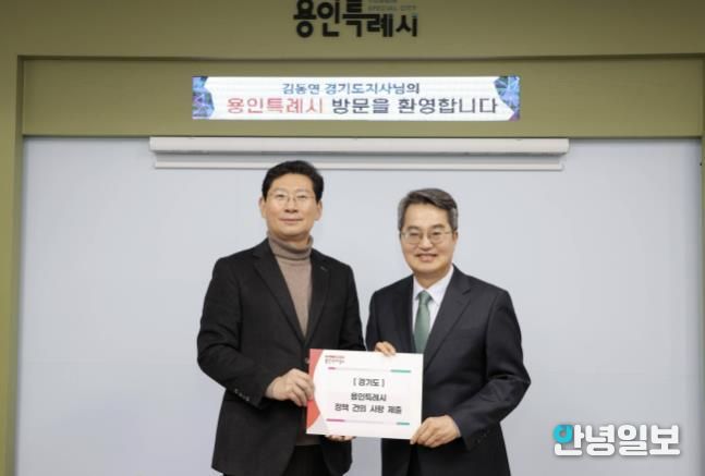 이상일 시장은 이날 아침 시장실에서 용인을 방문한 김 지사를 만나 9개 현안 사항에 대한 지원을 요청했다.