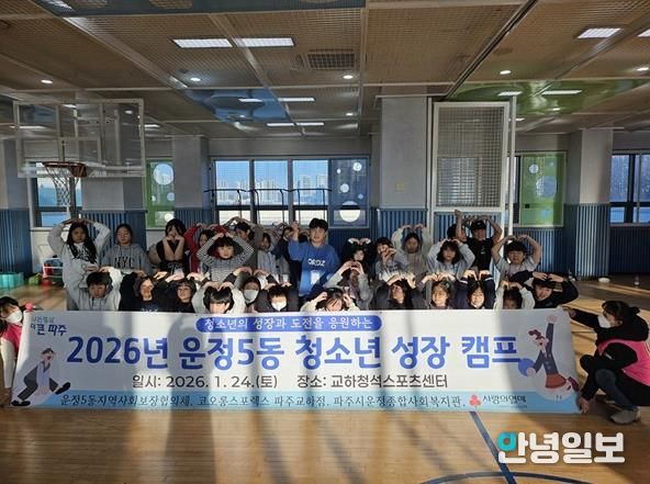 안녕일보 배윤 기자 | 파주시 운정5동은 지난 24일, 지역 내 유관기관과의 성공적인 협업으로 초등학교 4~6학년 청소년 30명을 위한 '2026년 청소년 성장캠프'를 마무리하며, 미래 세대에게 잊지 못할 경험을 선물했다고 밝혔다.