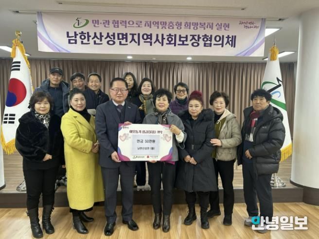 이번 성금은 남한산성면이 복지 사각지대 해소와 나눔 문화 확산을 위해 주민 중심의 맞춤형 복지서비스를 적극 추진한 성과로 받은 포상금으로, 기탁된 성금은 지역 내 취약계층 지원을 위해 사용될 예정이다.