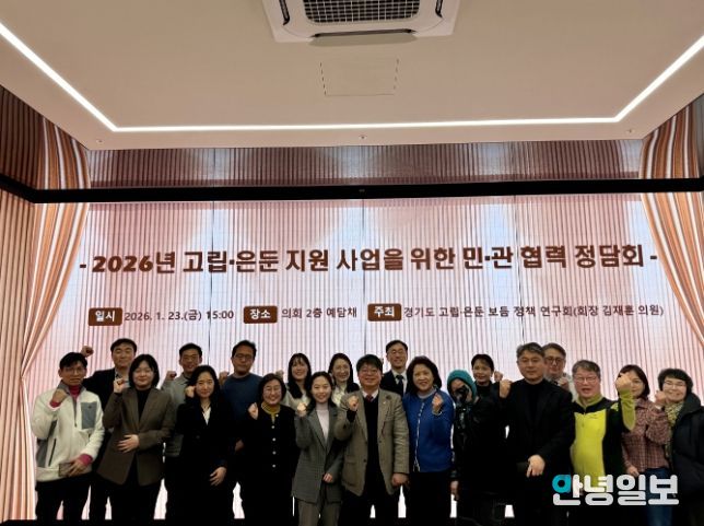 안녕일보 배윤 기자 | 경기도의회 고립·은둔 보듬 정책 연구회 회장 김재훈 의원(국민의힘, 안양4)은 1월 23일(금) 경기도의회 예담채에서 '2026 고립·은둔 지원 사업 활성화를 위한 민·관 협력 정담회'를 개최했다.