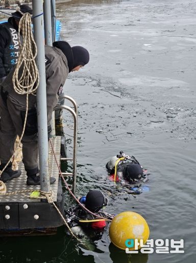 훈련 주요 내용은 ▲빙판 붕괴로 인한 익수자 구조 ▲저수온 환경에서의 인명 수색 및 구조 ▲구조보트 및 수난구조 장비 운용 ▲구조대원 안전확보 및 팀별 협업 훈련 등으로 진행됐다.