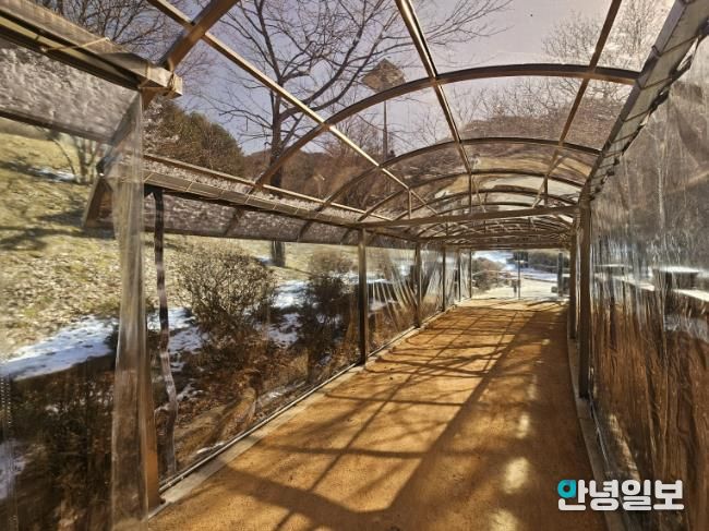 시는 2024년 조성된 병목안시민공원 맨발산책길 구간에 총 160m 길이의 지붕 캐노피와 방한 비닐막을 설치해 기온이 낮은 겨울철에도 체온 유지와 안전한 보행이 가능하도록 했다.