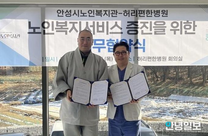 안녕일보 배윤 기자 | 안성시노인복지관은 허리편한병원과 지역 어르신들의 건강증진을 위한 업무협약(MOU)을 체결했다고 30일 밝혔다.