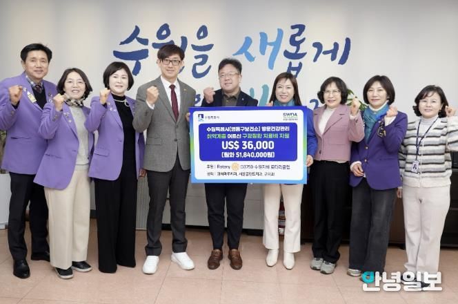 안녕일보 배윤 기자 | 국제로타리3750지구 수원지해로타리클럽이 “취약계층 어르신 구강 질환 치료에 사용해 달라”며 수원 영통구보건소에 후원금 3만 6000달러(5184만 원)를 전달했다.