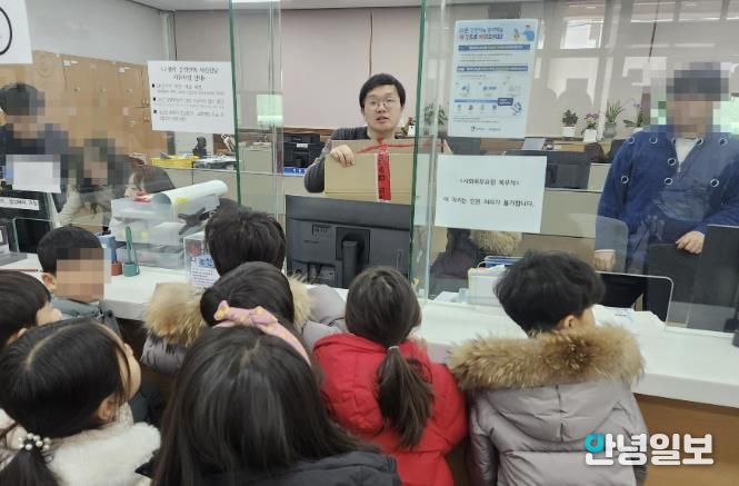 이날 그림나라어린이집 최혜진 원장이 원아 9명과 함께 행정복지센터를 찾았으며 아이들이 직접 유용폐자원을 전달하고, 자원선순환에 대한 설명 및 현장교육을 진행했다.