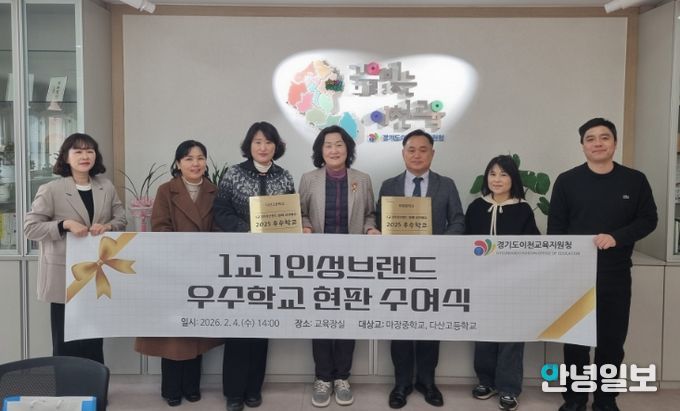 이번 수여식은 학교별 특성을 살린 인성 브랜드를 구축하고, 일상 속 인성교육 실천에 앞장선 우수교의 성과를 격려하기 위해 마련됐다. 행사에는 이천교육지원청 김은정 교육장을 비롯해 마장중학교 최진 교장, 다산고등학교 권지은 교감 등 학교 관계자 10여 명이 참석했다.