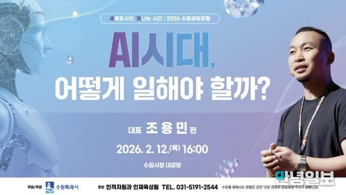 안녕일보 배윤 기자 | ‘새로운 시선, 빛나는 시간’ 제176회 수원새빛포럼이 2월 12일 오후 4시 수원시청 대강당에서 열린다. 조용민 언바운드랩데브 대표가 강연자로 나선다.