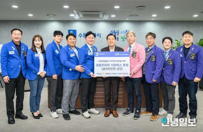안녕일보 배윤 기자 | 국제로타리 3750지구 수원4지역협의회가 “수원시 취약계층에 전달해 달라”며 수원시에 ‘새빛꾸러미’ 100상자(총 300만 원 상당)를 후원했다.