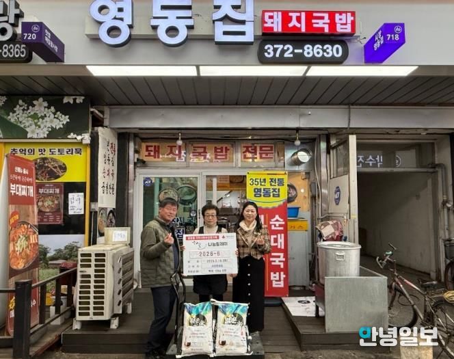 임영자 시장영동집 대표는 “작은 정성이지만 지역 내 어려운 분들이 든든한 한 끼를 드시는 데 보탬이 됐으면 좋겠다”며 “앞으로도 이웃에 대한 관심과 나눔을 지속해 나가겠다”고 전했다.