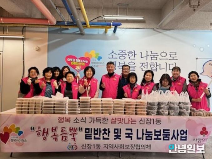 ‘행복듬뿍 밑반찬 및 국 나눔보둠사업’은 신장1동 지역사회보장협의체가 운영하는 동 특화사업으로, 저소득층의 건강한 식생활 지원을 위해 매월 1회 35가구를 대상으로 직접 만든 밑반찬 3종과 후원받은 국 등을 정기적으로 지원하고 있다.