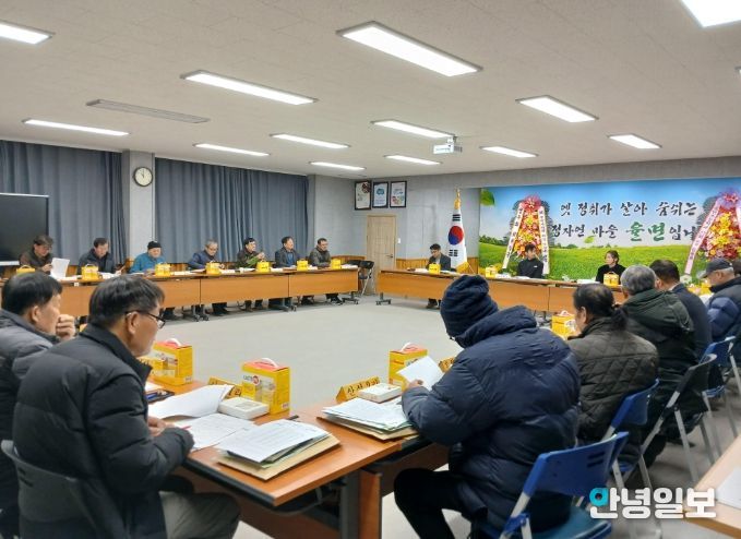 안녕일보 배윤 기자 | 율면이장단협의회는 2월 11일 율면 행정복지센터에서 2026년 2월 이장회의를 개최했다. 이번 회의는 이재섭 이장단협의회장이 취임한 이후 처음으로 열린 공식 이장회의로, 율면 이장들이 참석해 지역 현안을 공유하고 협력 방안을 논의했다.