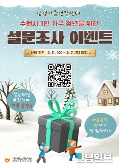 안녕일보 배윤 기자 | 수원시청소년청년재단(이사장 최종진)은 정서적 응원이 필요한 1인 가구 청년을 위해 '2026. 1인 가구 청년 정서지원 사업' 참여자를 2월 11일부터 3월 7일까지 모집한다고 밝혔다.