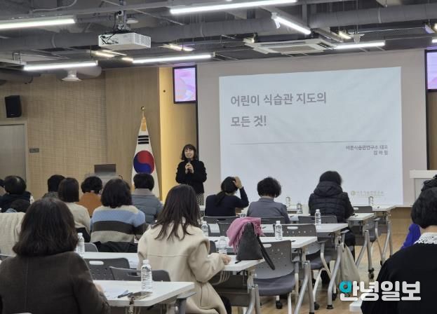 이번 집합교육에는 관내 어린이 급식시설(어린이집, 유치원, 지역아동센터) 40개소의 원장과 센터장이 참여했으며, 바른 식습관연구소 김아람 강사가 ‘어린이 식습관 지도법’을 주제로 강의를 진행했다.
