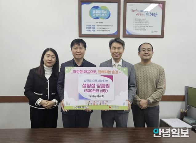 안녕일보 배윤 기자 | 의왕시 부곡동 부곡감리교회가 2월 12일 설 명절을 맞아 지역 내 어려운 이웃을 돕기 위해 500만원 상당의 상품권을 후원하며 지역사회를 위한 따뜻한 나눔을 실천했다.