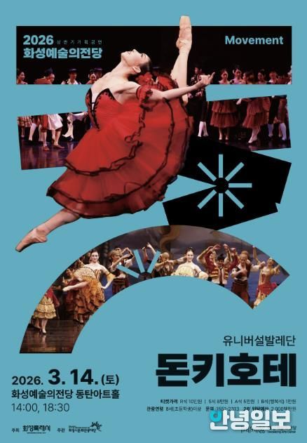 안녕일보 배윤 기자 | 발레 테크닉의 묘미를 만날 수 있는 희극 발레 대표작 유니버설발레단'돈키호테'가 3월 14일 14시,18시 30분, 2회에 걸쳐 화성예술의전당 동탄아트홀을 찾아온다.