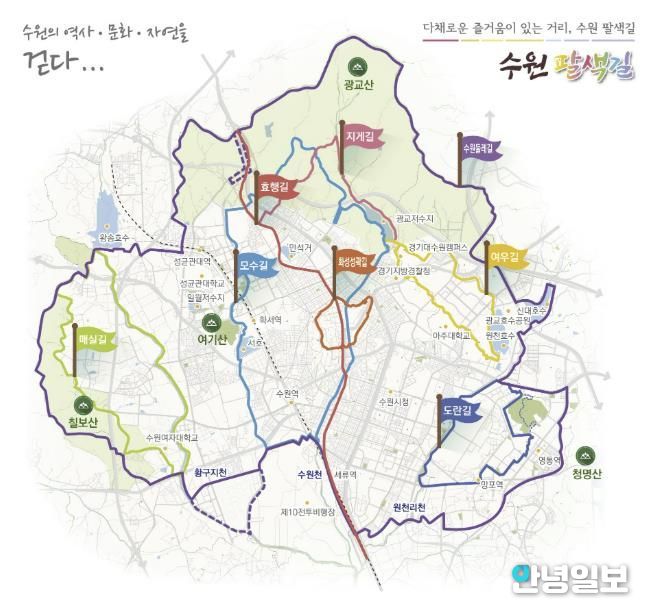 수원시 관계자는 “도시 변화로 단절된 구간을 연결하고 노후화된 안내 시설을 정비하는 데 중점을 뒀다”며 “앞으로도 대중교통과 연계한 보행 환경을 체계적으로 관리해 시민이 안전하게 수원팔색길을 이용할 수 있도록 하겠다”고 말했다.