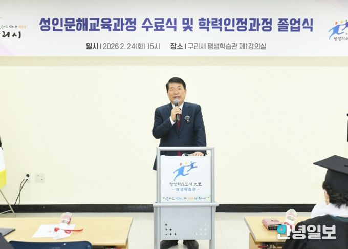 안녕일보 배윤 기자 | 구리시는 2월 24일 구리시평생학습관에서 ‘2025년 성인 문해 교육 과정 수료식 및 학력인정과정 졸업식’을 개최했다.