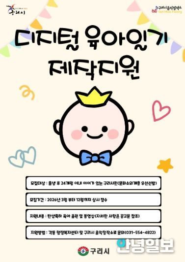 백경현 구리시장은 “저출산이라는 국가적 과제를 극복하기 위해서는 작은 실천이 모여 큰 변화를 만든다고 생각한다”라며 “이번 디지털 육아일기 제작 과정을 통해 탄생의 기쁨을 가족이 함께 나누고, 더욱 화목한 가정이 늘어나길 기대한다”라고 밝혔다.