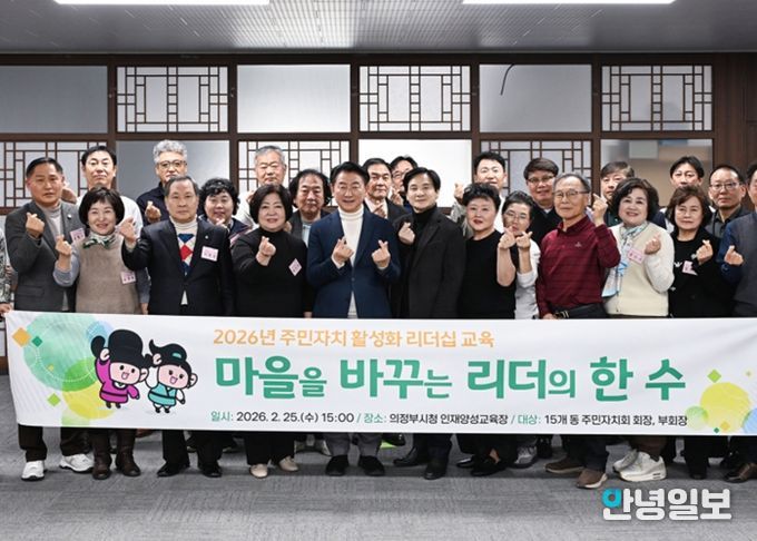 안녕일보 배윤 기자 | 의정부시는 2월 25일 시청 인재양성교육장에서 15개 동 주민자치회 회장과 부회장을 대상으로 ‘마을을 바꾸는 리더의 한 수’ 주민자치 활성화 리더십 교육을 진행했다.