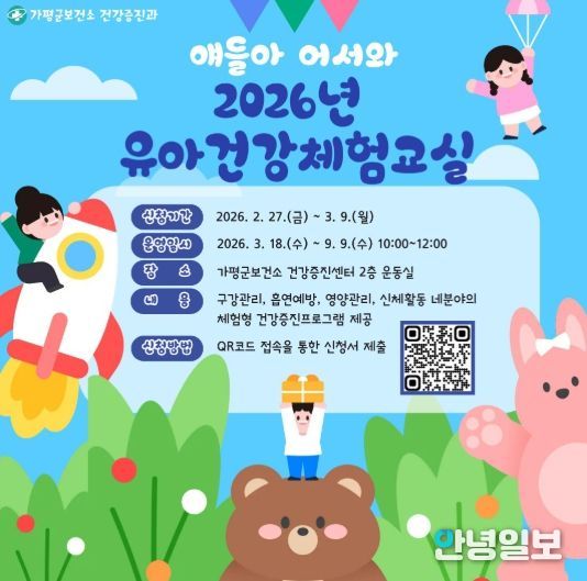 안녕일보 배윤 기자 | 가평군보건소는 어린이집과 유치원을 대상으로 신청을 받아 체험형 ‘유아건강체험교실’을 3월 18일부터 9월까지 매주 수요일 운영한다.