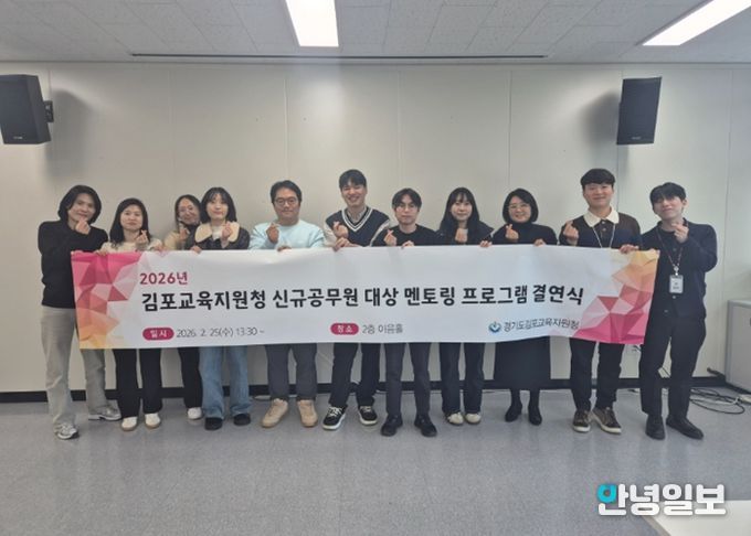 안녕일보 배윤 기자 | 김포교육지원청은 25일 신규공무원의 안정적인 공직 적응과 직무 전문성 강화를 위한 멘토링 프로그램 결연식을 개최하고 본격적인 운영에 들어갔다.