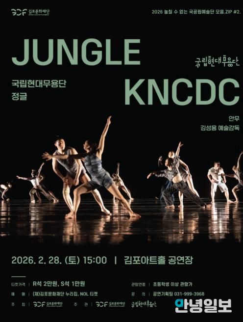 안녕일보 배윤 기자 | (재)김포문화재단은 지난 2월 28일 오후 3시 김포아트홀에서 개최한 국립현대무용단 '정글' 공연이 객석점유율 93% 이상을 기록하며 성황리에 막을 내렸다고 밝혔다.