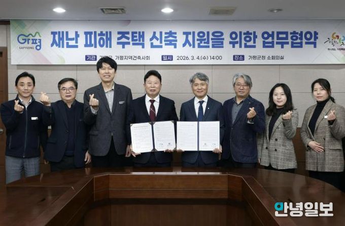 군은 4일 군청 소회의실에서 가평지역건축사회와 ‘재난 피해 주택 신축 지원을 위한 업무협약’을 체결했다. 이번 협약은 행정안전부와 대한건축사협회의 협력체계를 지역 단위로 확산해 실질적인 피해 복구 지원체계를 마련하기 위해 추진됐다.