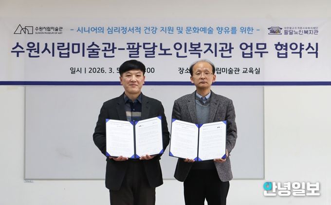 안녕일보 배윤 기자 | 경기도 수원시립미술관과 수원시 팔달노인복지관은 5일 관내 시니어의 문화예술 향유 활성화를 위한 업무협약을 체결했다.