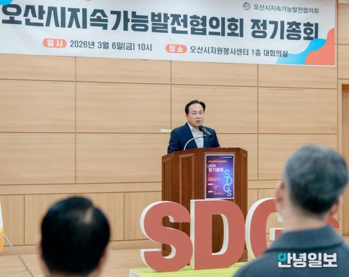 안녕일보 배윤 기자 | 오산시는 지난 6일 자원봉사센터 대회의실에서 회원과 관계자 등 70여 명이 참석한 가운데 오산시지속가능발전협의회 2026년 정기총회를 개최했다고 밝혔다.