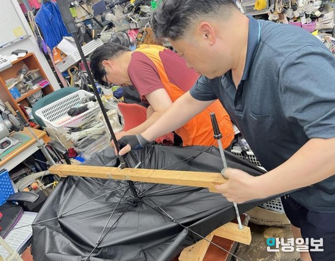 운영 시간은 매주 월~수요일(공휴일 휴무) 오전 9시 30분부터 오후 3시 30분까지다. 생활 우산을 대상으로 1인당 2개까지 수리할 수 있다. 골프우산·수입 우산·고급 양산 등 특정 부품이 필요한 우산은 수리하지 않는다.