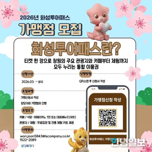 안녕일보 배윤 기자 | 화성특례시가 관내 주요 관광지를 자유롭게 이용할 수 있는 통합 자유이용권 ‘화성 투어패스’의 신규 가맹점을 상시 모집한다고 12일 밝혔다.