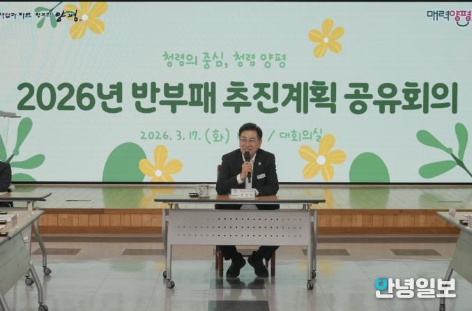 안녕일보 배윤 기자 | 양평군은 지난 17일 ‘2026년 반부패 추진계획 공유회의’를 개최하고, 기관 전반의 청렴문화 확산과 반부패 정책 추진 방향을 공유했다.