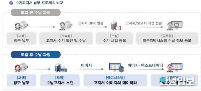 이 시스템은 수기로 작성한 고지서의 문자와 숫자를 자동으로 인식해 전산 데이터로 변환하는 방식이다.