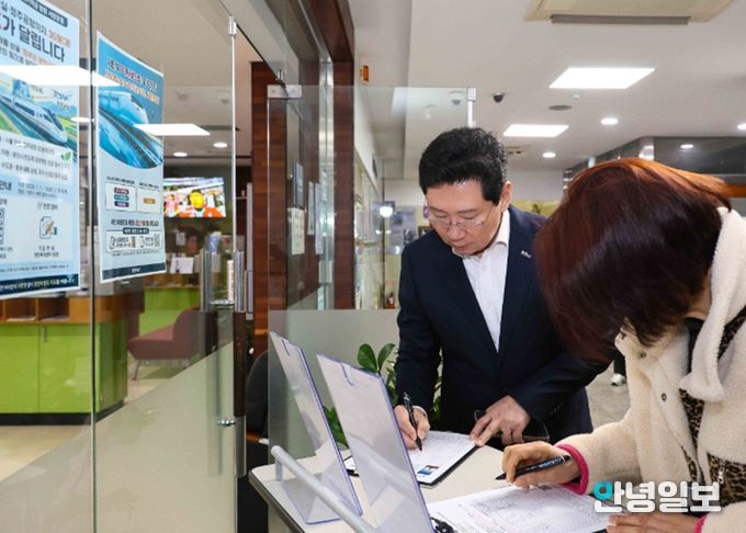 안녕일보 배윤 기자 | 이상일 용인특례시장은 18일 오전 수지구 성복동행정복지센터를 찾아 경기남부광역철도 등 철도망 구축을 위한 서명운동에 참여했다.