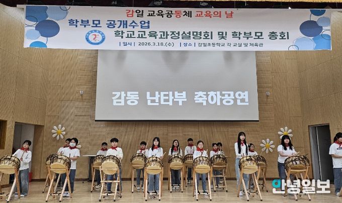 안녕일보 배윤 기자 | 하남 감일초등학교는 3월 18일 2026학년도 ‘감일 교육공동체 교육의 날’을 맞아 학부모총회와 학교교육과정 설명회를 개최하고, 학생 자율동아리 ‘감동 난타부’의 축하 공연을 선보였다.